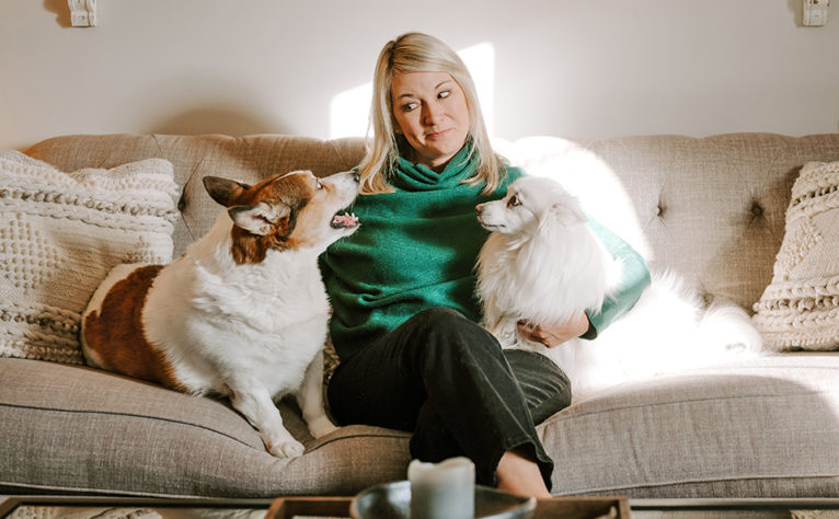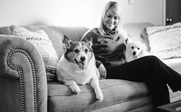 I have two dogs, Mac and Mila. Mac is a Corgi and I’ve had him since he was a puppy. He is stubborn and not a cuddler. He’s his own character and I love him dearly. He’s extremely loyal and loves belly rubs. His favorite snack is anything… except vegetables. Mila is a small-breed American Eskimo. I found her in a shelter when she was 7 years old. She had been released by a breeder and was very scared when she came to my home. I’ve worked with her over the past few years, and she now runs around the backyard with a big smile on her face. She’s very quiet and well-behaved. She loves cold weather, and her favorite snack is fresh snow. Every night before bed I tell them, “God Bless you, Momma loves you. Sweet dreams and sleep well.”