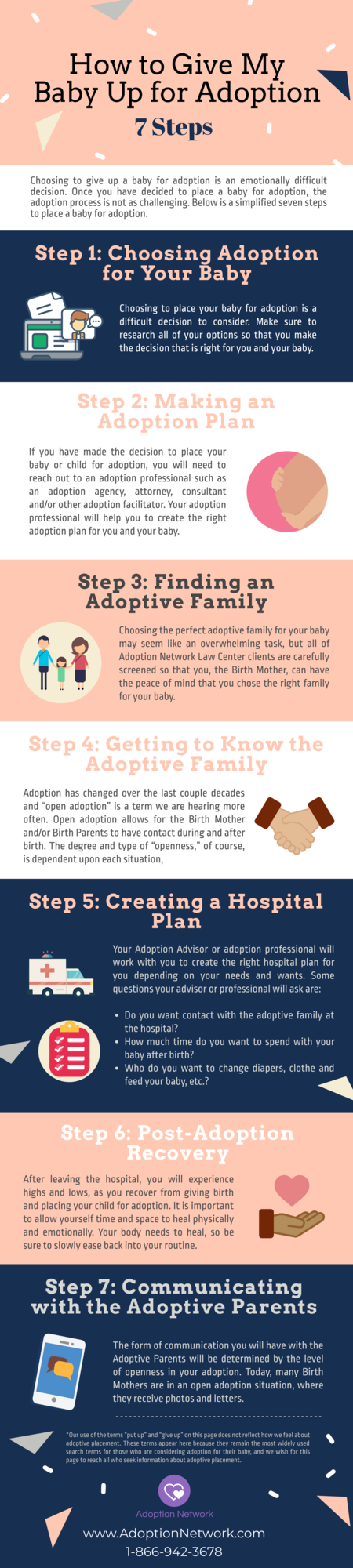Choosing to give up a baby for adoption is an emotionally difficult decision. Once you have decided to place a baby for adoption, the adoption process is not as challenging. Below is a simplified seven steps to place a baby for adoption.